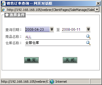 1、從菜單中選中“倉庫銷售分布”項,系統(tǒng)自動彈出查詢條件設置界面